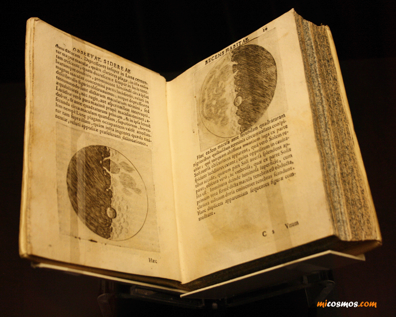 Sidereus Nuncius, de Galileo Galilei, 1ª ed. Venecia 1610. Biblioteca Nazionale di Roma "Vittorio Emmanuelle II", expuesto en Valencia.