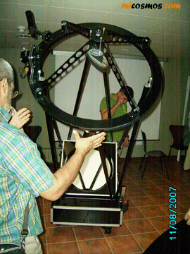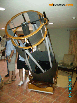 Entre el 10 y el 12 de agosto de 2007, se ha celebrado en Aras de los Olmos (Valencia) el RETA 2007 (REUNIÓN DE TELESCOPIOS DE AFICIONADOS), que reúne anualmente a los miembros del foro de Internet CONSTRUCTORES AFICIONADOS DE TELESCOPIOS (CAT). Hemos disfrutado con las exposiciones de nuestros amigos, así como de las charlas personales o en corrillos que se improvisan en este tipo de reuniones y que suelen ser de lo más fructífero. Además hemos podido contrastar el alto nivel de algunos de los instrumentos presentados, con los que también hemos podido observar. Personalmente felicito a los excelentes "manitas". Y, aunque yo prefiera mantener los dos pies en el suelo en lugar de en los peldaños de la escalera para observar, hay que reconocer que después de trepar hasta lo alto vale la pena lo que allí te aguarda. El problema es que algunas imágenes provocan un súbita caída de hue... que es mayor desde lo alto de la escalera. Inolvidables en la retina algunas de la imágenes de M11, M13, M16, M20, Velo del Cisne, etc con los newton de 460, 600 y 610 mm, así como con el excelente refractor APO de 130. Particularmente interesante resultó la observación de la supernova 2007gi en NGC 4036.