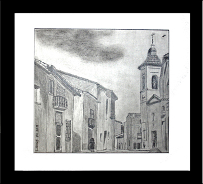 Major de Casinos con el viejo campanario de la Iglesia. A la derecha, la