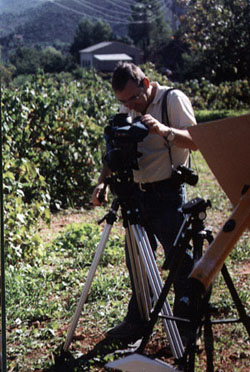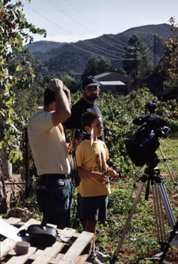 Ferrer supervisando la filmación de su cámara de video con filtro