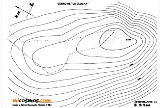 aérea y mapa de cotas del Cerro La Clocha |