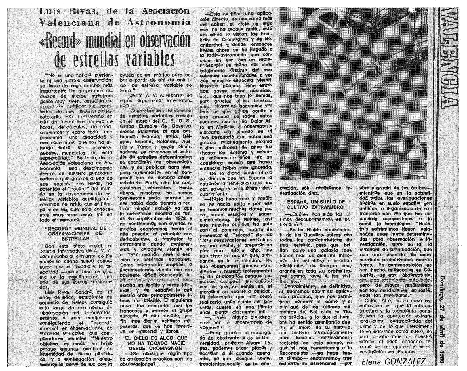 En diciembre de 1979 obtuve el récord mundial de observaciones de estrellas variables, al realizar 1376 mediciones de estrellas variables en una sola noche. También participé en la consecución del récord mundial de observación en grupo durante el campo de observaciones Casinos 80, en el que obtuvimos en la noche del 17 de agosto, un total de 8682 medidas entre 12 observadores (una media de 724 por observador) frente a los 8681 de 16 observadores (media de 543 por observador) del mejor registro anterior.