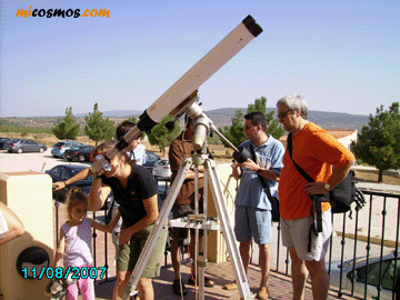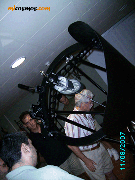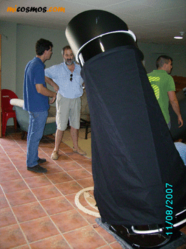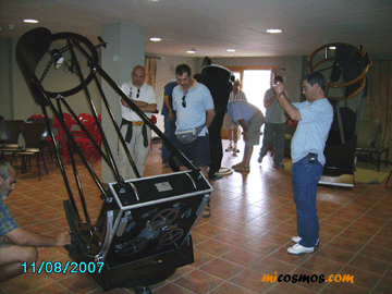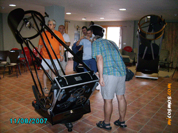 Entre el 10 y el 12 de agosto de 2007, se ha celebrado en Aras de los Olmos (Valencia) el RETA 2007 (REUNIÓN DE TELESCOPIOS DE AFICIONADOS), que reúne anualmente a los miembros del foro de Internet CONSTRUCTORES AFICIONADOS DE TELESCOPIOS (CAT). Hemos disfrutado con las exposiciones de nuestros amigos, así como de las charlas personales o en corrillos que se improvisan en este tipo de reuniones y que suelen ser de lo más fructífero. Además hemos podido contrastar el alto nivel de algunos de los instrumentos presentados, con los que también hemos podido observar. Personalmente felicito a los excelentes "manitas". Y, aunque yo prefiera mantener los dos pies en el suelo en lugar de en los peldaños de la escalera para observar, hay que reconocer que después de trepar hasta lo alto vale la pena lo que allí te aguarda. El problema es que algunas imágenes provocan un súbita caída de hue... que es mayor desde lo alto de la escalera. Inolvidables en la retina algunas de la imágenes de M11, M13, M16, M20, Velo del Cisne, etc con los newton de 460, 600 y 610 mm, así como con el excelente refractor APO de 130. Particularmente interesante resultó la observación de la supernova 2007gi en NGC 4036.