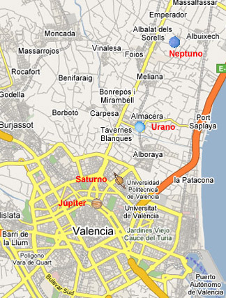 TIERRA sería una bolita algo mayor, de 2,6 centímetros, situada a 306