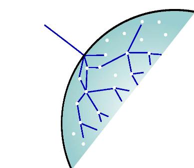 atravesarla, al encontrarse con más y más partículas.,