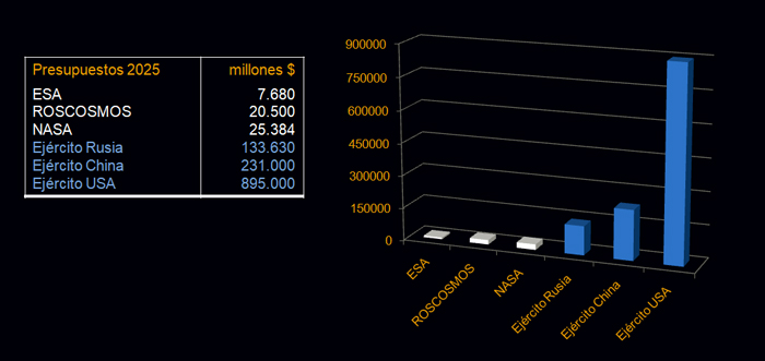 presupuestos de tres agencias espaciales como ROSCOSMOS (Rusia), la ESA