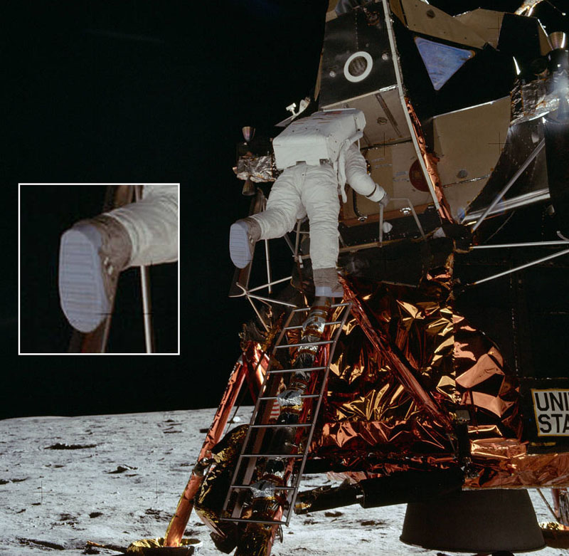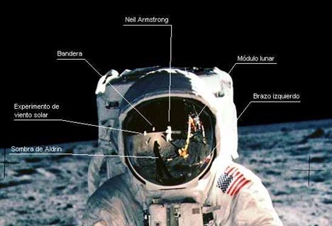 "extraños" reflejos en el casco de Aldrín. No se