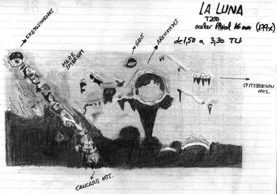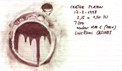 Dibujo del cráter Platón realizado entre las